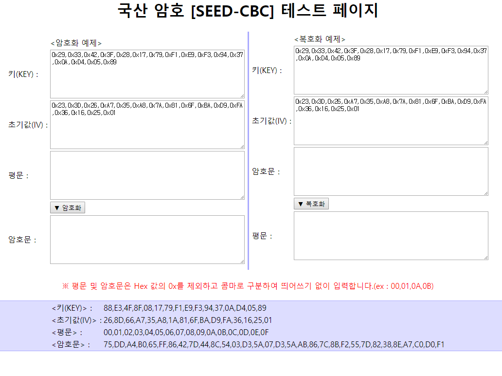 <title>국산암호 [SEED - CBC] 테스트 페이지</title>