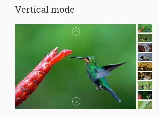 그리고, 옵션만 바꿔주면 위 사진처럼 썸네일 이미지를 오른쪽으로 배치하고, 화면 이동도 상하(Vertical)로 움직이게 할 수도 있습니다