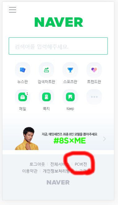 우선 아래와 같이 모바일환경에서 접속했을 때, PC환경으로 가기위한 링크를 만듭니다.