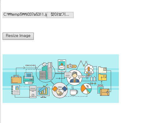 위 코드를 실행시키면 아래와 같이 보여지게 됩니다. 찾아보기를 눌러 앞서 말씀드렸던 6455x2709px 크기의 이미지를 업로드 한 후에 Resize Image 버튼을 클릭하면