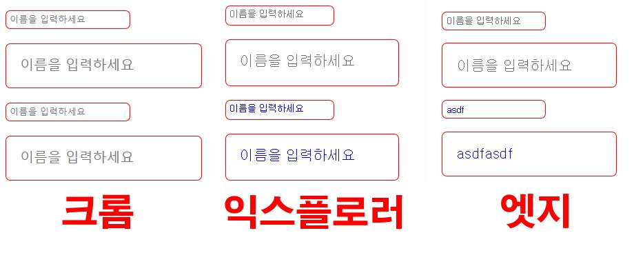 입력란에 대한 설명인 placeholder 의 색상을 변경하려면 color 속성을 사용하면 됩니다만, 그냥 color 속성을 사용하면 입력하는 문자는 변경이 되지만 placeholder 색상은 브라우저에 따라 다르게 보여집니다.