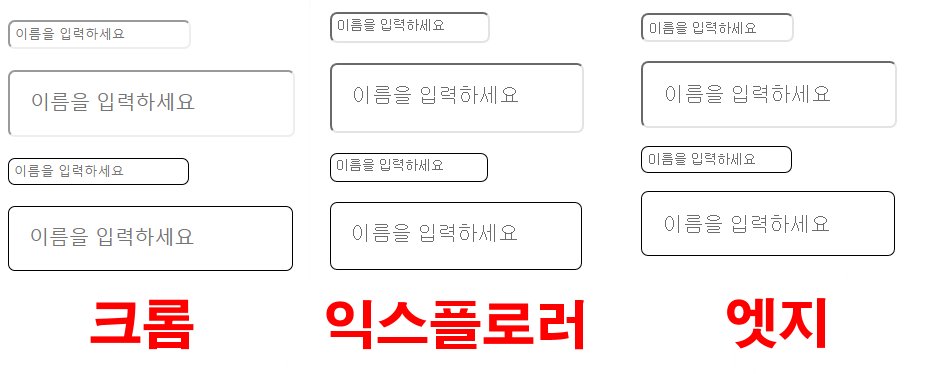 하지만, line-height 를 이용하여 입력란의 크기를 키우게 되면 문제가 있는데요, 크롬과 엣지에서는 제대로 보이지만 익스플로러 에서는 글씨위치가 이상하게 보입니다