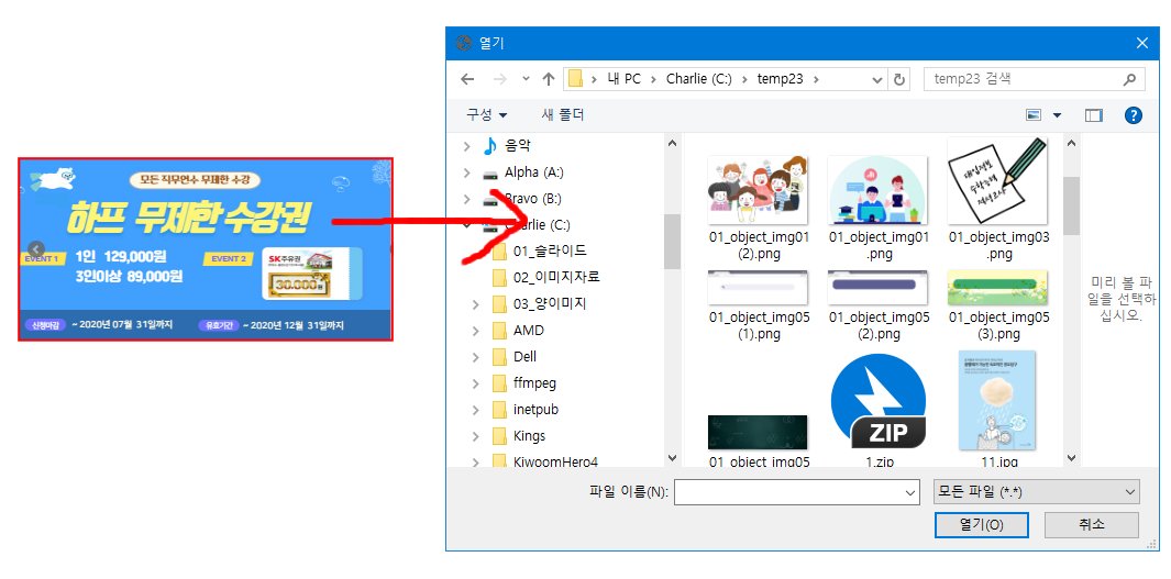 이미지를 변경하고자 할때, input 태그를 사용하면 화면에 파일선택바가 나타나게 되는데요, 아래의 빨간색 부분과 같이 해당 이미지를 클릭하면 바로 파일선택창이 뜨도록 하고 싶을때가 있습니다