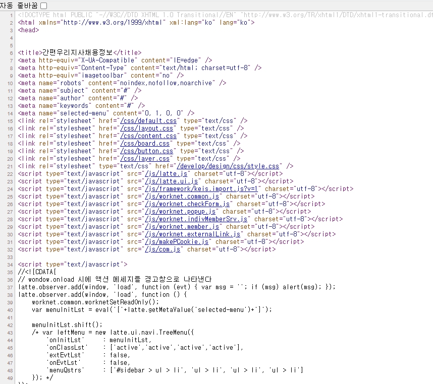 소스코드를 확인해 보면, 특정 사이트의 소스와 동일하다는 것을 확인할 수 있습니다.