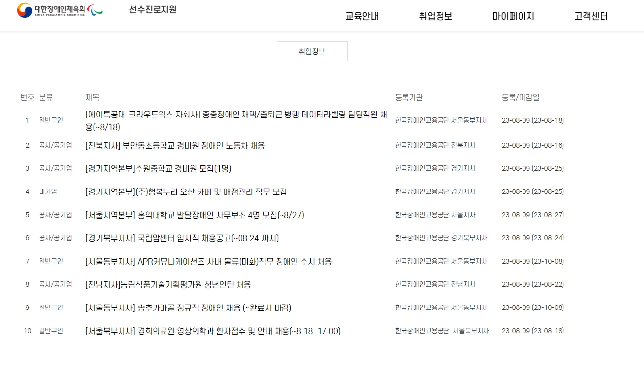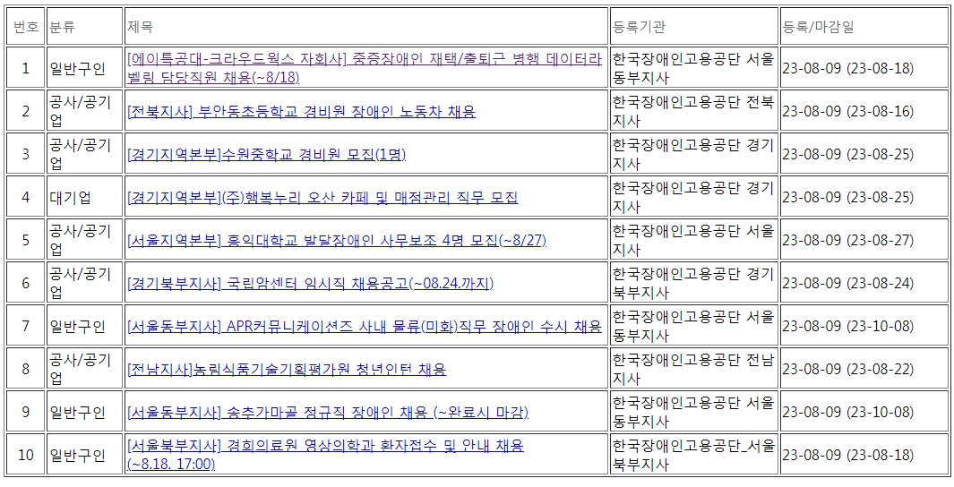 장애인 고용포털 사이트에서 채용정보 가져오기