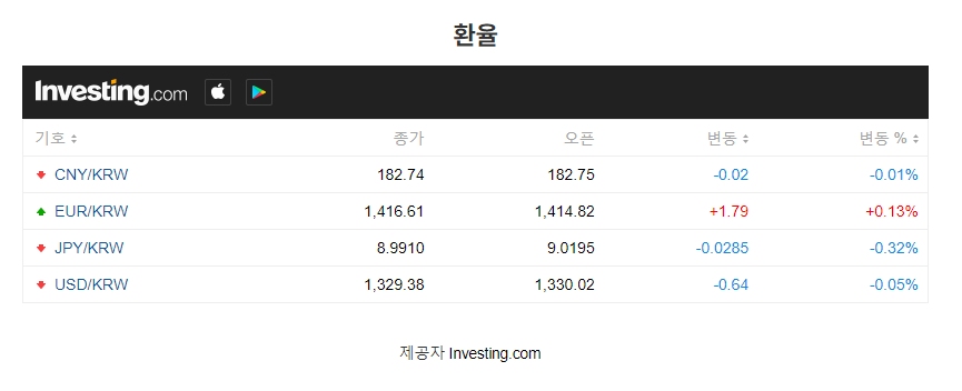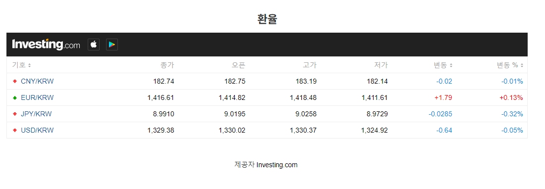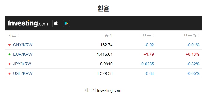 Investing.com 에서 제공하는 환율정보